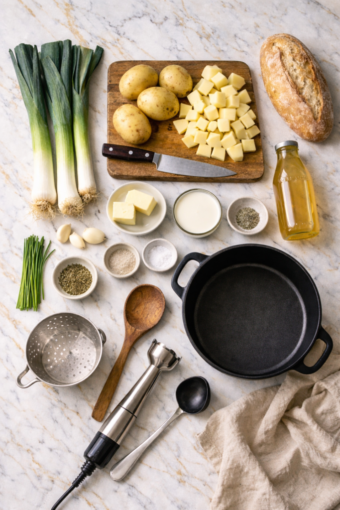 Can I make this in a slow cooker? Yes. Sauté the leeks and garlic on the stovetop first (this step matters), then transfer everything to the slow cooker with the broth and potatoes. Cook on low for 6 to 7 hours or high for 3 to 4 hours. Blend and stir in cream before serving.