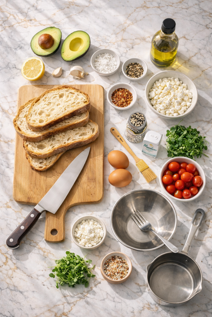 What bread works best for this? Thick-cut sourdough is the gold standard because it’s sturdy enough to hold up under the toppings without going soggy. Whole grain and rye bread are solid second choices. Avoid anything too soft like sandwich bread — it collapses.